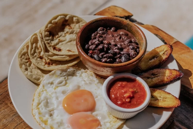 Mornings start with tasty dishes like fluffy pancakes, cheesy brekkie burritos, fresh fruit bowls, and flavor-packed chapín plates – all with bottomless coffee or tea. Served daily in our open-air common area, because breakfast tastes better with volcano views.